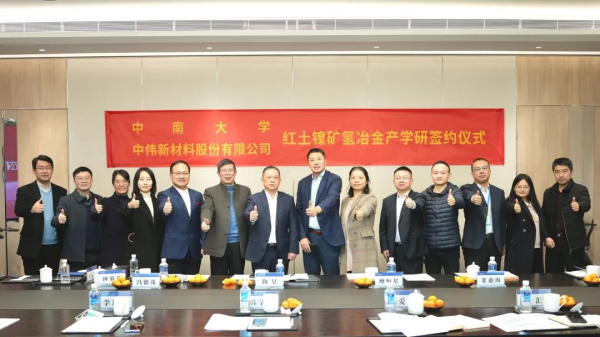 2023年1月9日上午,中南大學(xué)與中偉股份紅土鎳礦氫冶金產(chǎn)學(xué)研合作成功簽約。中南大學(xué)副校長郭學(xué)益,科學(xué)研究部部長李啟厚,冶金與環(huán)境學(xué)院副院長陳愛良,資源循環(huán)研究院副院長王親猛、童匯、李棟,科學(xué)研究部王李昌,中偉股份資深副總裁陶吳,高級(jí)副總裁兼董事會(huì)秘書廖恒星,首席專家馮德茂,總裁辦主任張惠海等領(lǐng)導(dǎo)出席見證簽約儀式。